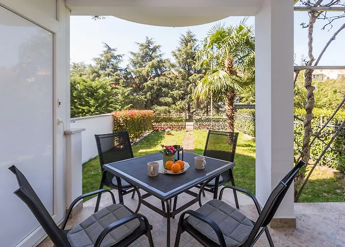 El Malerisches Apartment Mit Mediterranem Garten - Nur 450 Meter Zum Strand Poreč, situado a tan solo 8 minutos a pie de la Calle Decumanus, se encuentra a a 600 m de un importante lugar para familias como el Acuario de Porec. El apartamento cuenta con Wi-Fi y un aparcamiento privado gratuito para los huéspedes que viajen en coche.